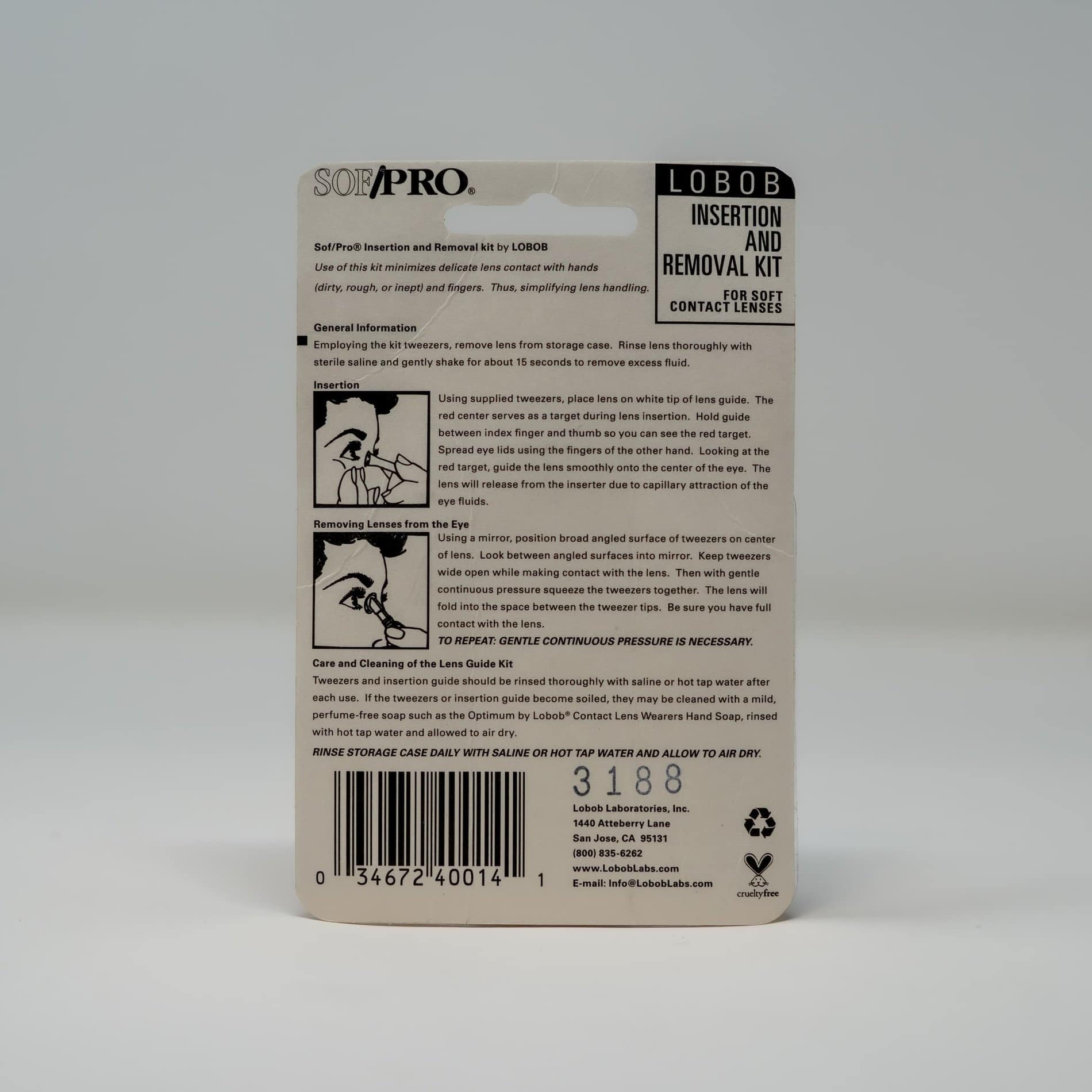 The Lobob Insertion and Removal Kit includes everything you need to comfortably and confidently insert and remove your soft contact lenses. Simplify lens handling by minimizing delicate lens contact with hands and fingers.