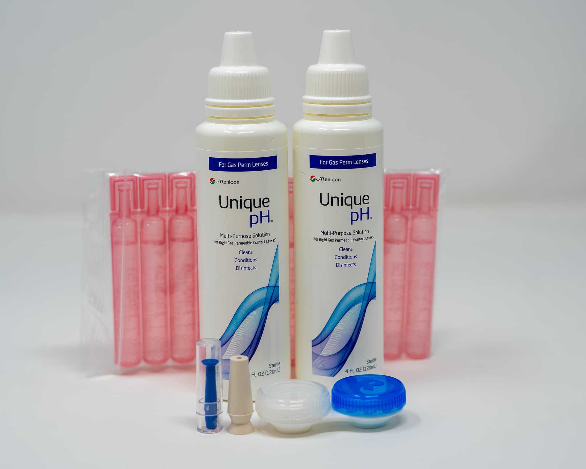 Our scleral compliance packs contain everything you need to care for your scleral lenses whether that’s at home or on the go. The Unique PH + AddiPak Compliance Pack contains (2) 4oz bottles of Unique PH multipurpose solution, (50) 5ml AddiPak saline vials, (1) DMV Ultra, (1) DMV Scleral Vented, and (1) contact lens case.